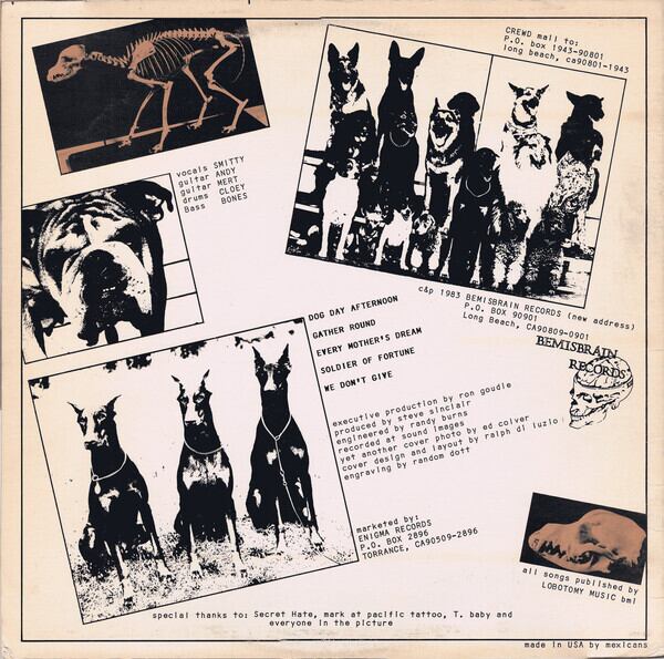 Mystic の「You Cant Argue With Sucksess」Comp LP ('82) や「When Men Were Men... And Sheep Were Scared」Comp LP ('85) に参加していた、カリフォルニアロングビーチ産オブスキュア・ハードコア。Modern Warfare、Nip drivers等が所属するBemisbrainより。