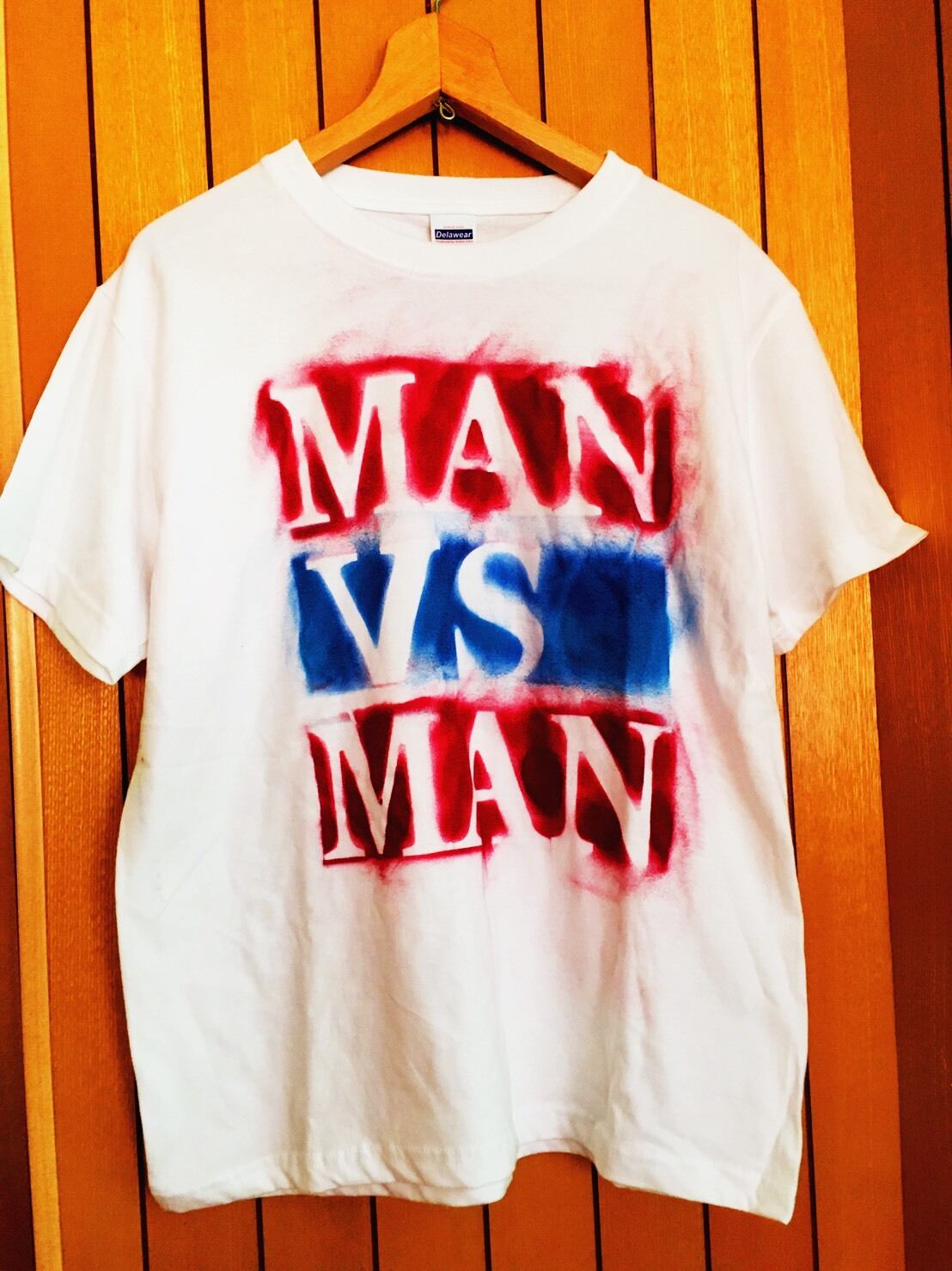 size:M M.A.N.VS.M.A.N - ステンシルトリコtee ルージュxブルー